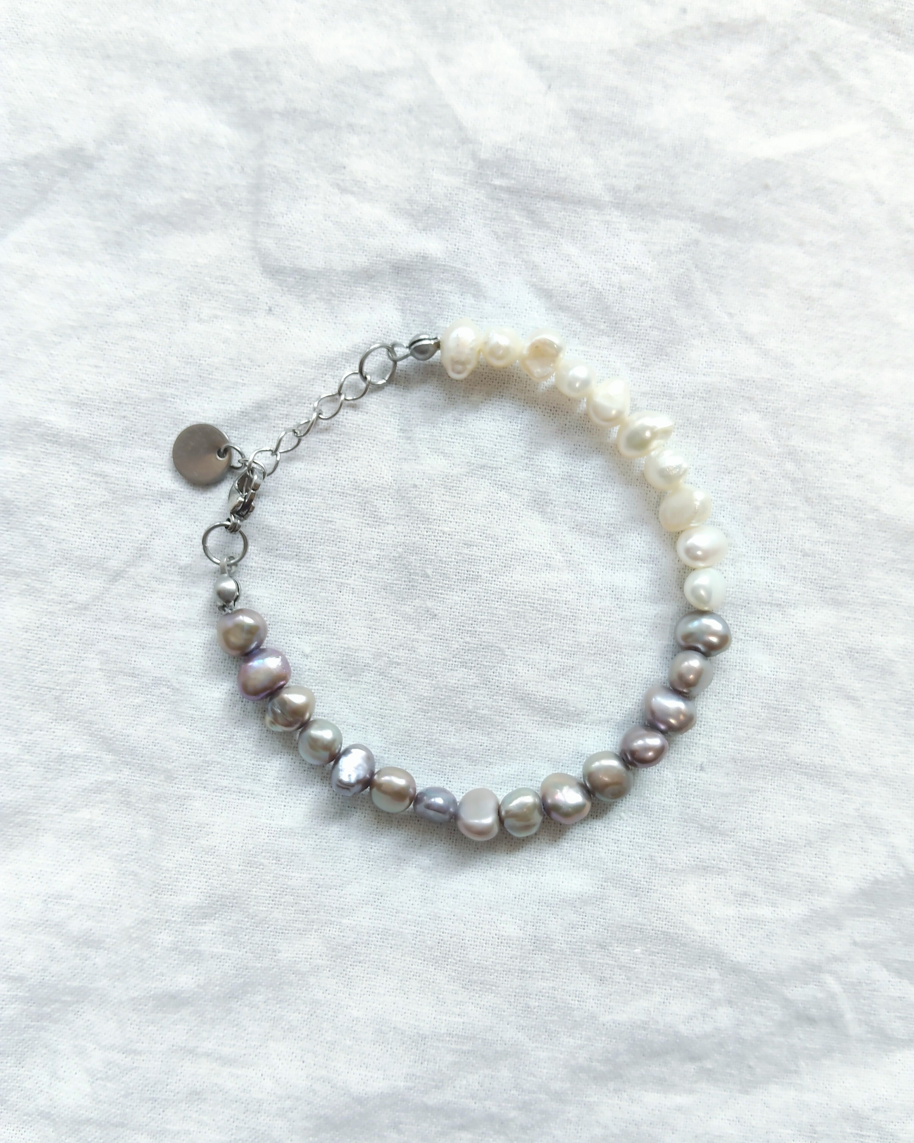 グレー/ホワイトの淡水パールブレスレット